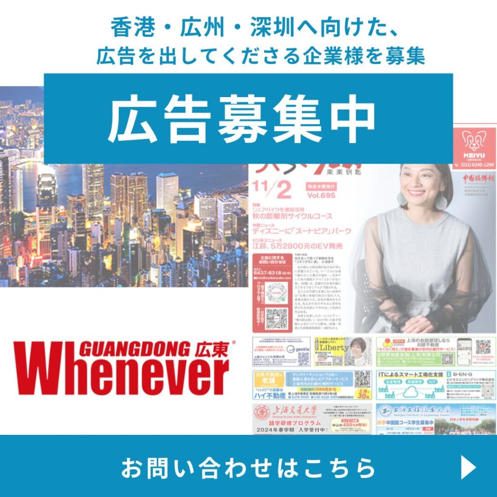 雑誌【ウェネバー広東】の広告募集について、ご興味を持っていただきありがとうございます。 ウェネバー広東は中国の上海、北京、無錫・蘇州・広東で発刊されている日本語月刊誌となります。※配送は有料となります。 -